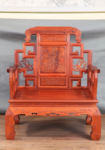 沙發(fā)大略的細(xì)節(jié)紋飾圖案均雕繪在了正面的靠背板處,在其它部位,除了座位面四周的墊面處以及四只座腳的表面有幾些邊條紋飾稍加修幅外,都不加任何的修飾,極盡木材原始之紋路,真實(shí)而自然。扶手處的設(shè)計(jì)線條感極具曲線美,并在側(cè)面同樣以多處面積的鏤空作為處理,與沙發(fā)整體之設(shè)計(jì)風(fēng)格保持了一致,譬如屏風(fēng)給人的感覺一般,隱約中透露著含蓄之美,這也是中國風(fēng)理念的一處極好展現(xiàn)。
