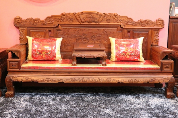 關(guān)于該系列沙發(fā)的具體詳情細(xì)節(jié),考慮到其雕琢繁冗圖案眾多的緣故,我們就著重從其紋飾入手,通過解析其寓意、并從外觀結(jié)構(gòu)上依次進行介紹、另外針對產(chǎn)品的制作工藝、實用性等特點進行補充描述。