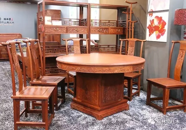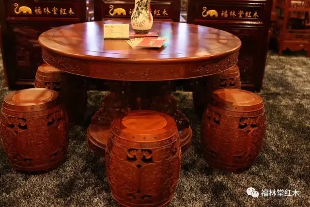 福林堂紅木—緬甸花梨木精品—福臨門面雕圓桌
