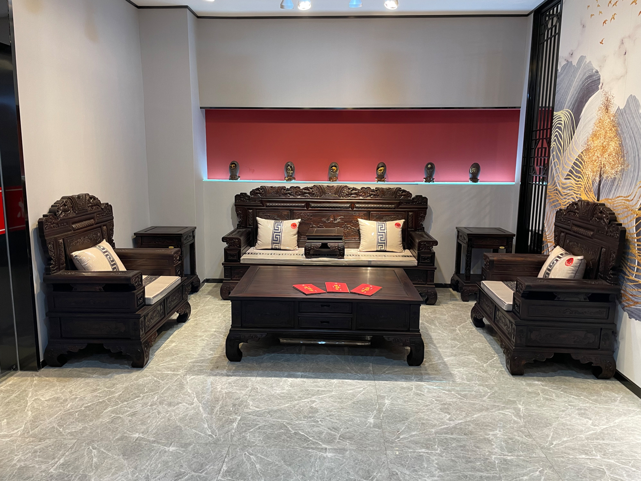 2、紅木家具在房間內具有較強的聚氣作用,能夠聚氣、聚財、聚人,從而改善人際關系,對人的事業發展和身心健康具有明顯的改善作用。